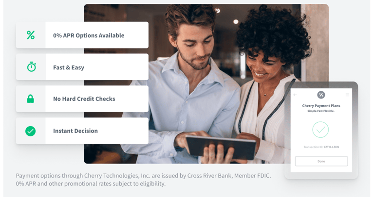 Payment options through Cherry Technologies, Inc. are issued by the following lending partners: https://withcherry.com/lending-partners/.